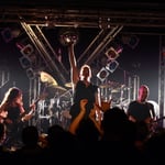 Stefan Schroff (Git), Sarah Zaugg (Bass), Flavio Mezzodi (Drums), Sitzend: Andy Portmann (Vocals)